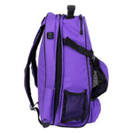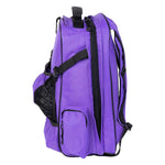 Huntley Equestrian Deluxe Equestrian Backpack holds everything you need for the barn or ringside. Designed for the busy equestrian who needs their equipment quickly! This heavy duty nylon backpack features one large interior compartment stores larger items like a computer and clothes. Exterior storage features include a helmet compartment, crop, cell phone, water bottle, glove storage, and adjustable shoulder straps. This backpack has it all and is built to last. Keep your equestrian items on the go with this easy access backpack! Available in Black, Navy Blue, Brown, and Purple.