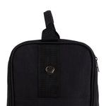 Huntley Equestrian Tall Riding Boot Bag, Black is constructed with a durable, polyester material that is made to keep your boots clean, easy to store, and ready for travel. The Huntley Tall Boot bag has a classic design that includes a carrying handle at the top, single zipper opening for easy access to one large compartment, metal ventilation tabs on each side for breathability, exterior small zippered pocket for storage, exterior open pocket for easy access, exterior reinforced bottom that includes 4 cleats. The Huntley Tall Boot bag offers plenty of space for long foot beds and clearance to access to Tall boots. This bag will keep boots protected from dust, scuffs, and provide safe storage for your boots. The Huntley Boot bag measurements are 14.5" Inches long x 23.5" inches high x 9.5" inches wide. The Huntley Boot Bag stays upright with boots stored and sits firmly with a coated, reinforced bottom material. The Huntley Tall Boot Bag will keep your boots in great shape, dust free, easy to use and store.
