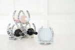 Huntley Horseshoe Napkin Holder. Crafted from durable aluminum with a sleek silver finish, this stylish holder features a classic horseshoe design, symbolizing luck and sophistication. Perfect for holding standard-sized napkins, it is both functional and decorative—ideal for horse lovers, ranch-style décor, or equestrian-themed events. Whether placed on a dining table, kitchen counter, or outdoor picnic setting, the Huntley Horse Shoe Napkin Holder brings charm and practicality to any occasion.
