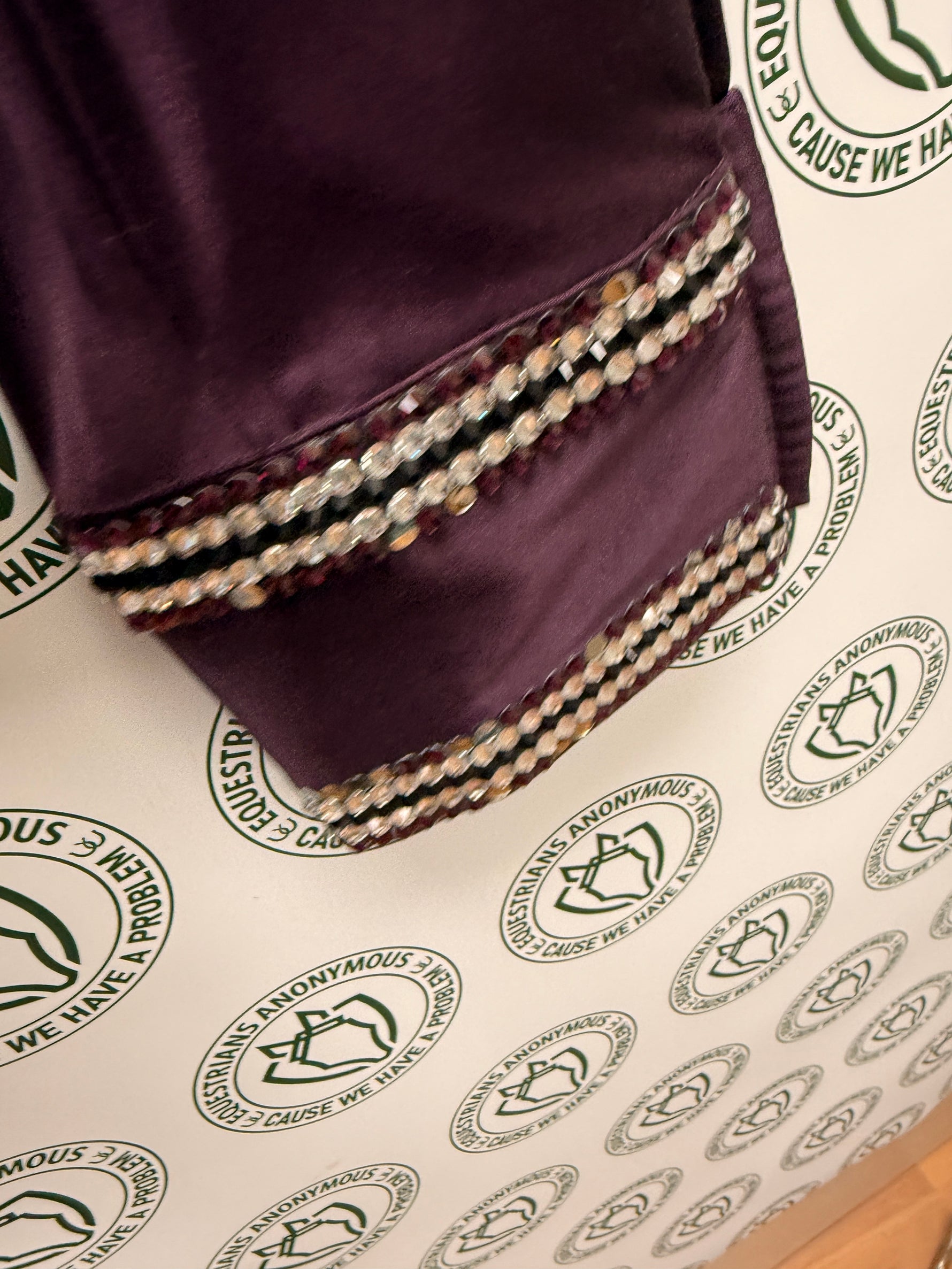 10 Women's Perry Ellis Purple w bling show shirt silk like in great condition bling on cuffs