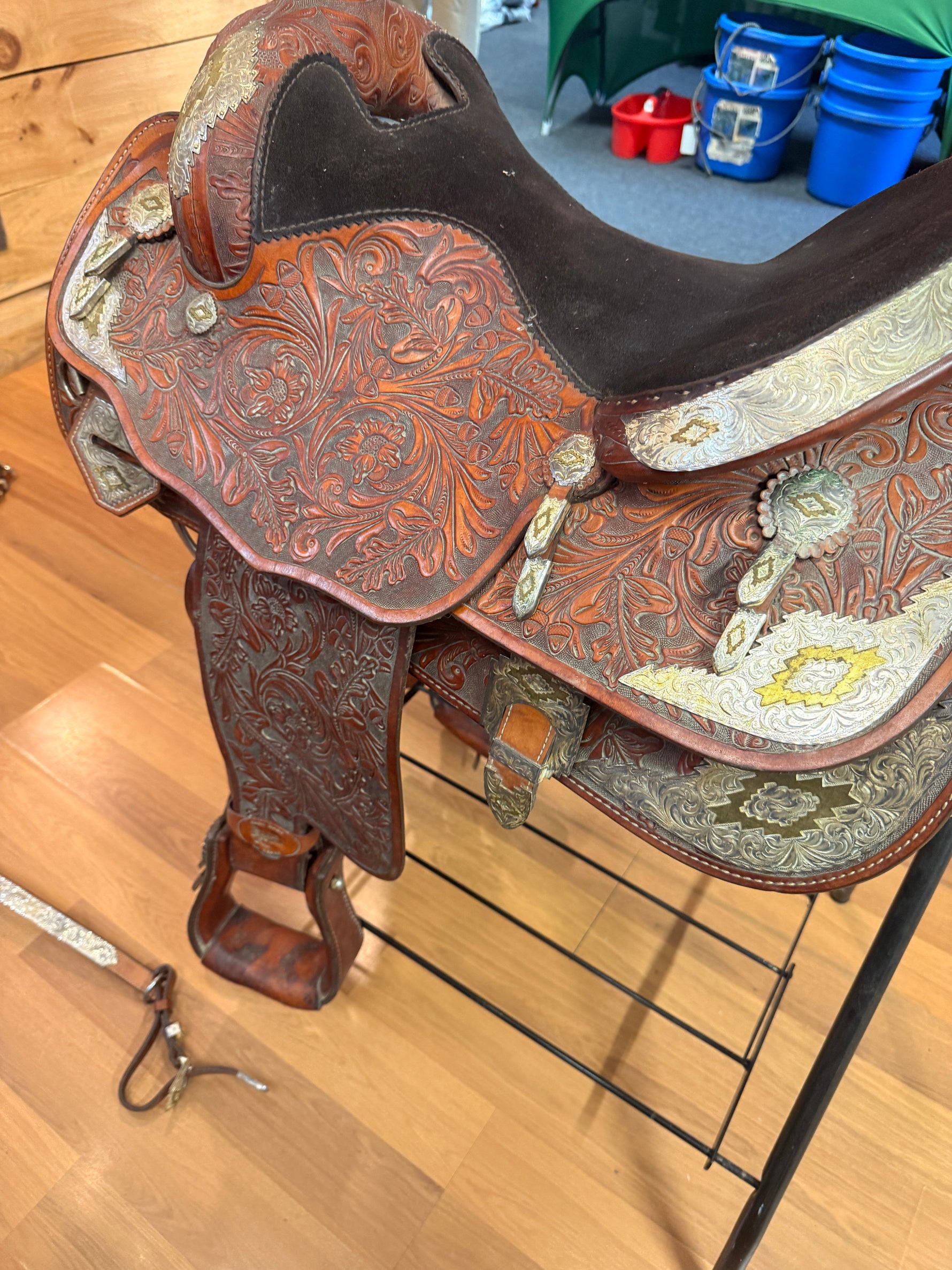 Saddle - Western 17" Billy Royal Sante Fe Classic Western with matching Western Saddle Pad Western Saddle Storage Bag Western one ear bridle w bit Western split reins matching Breastplate complete package