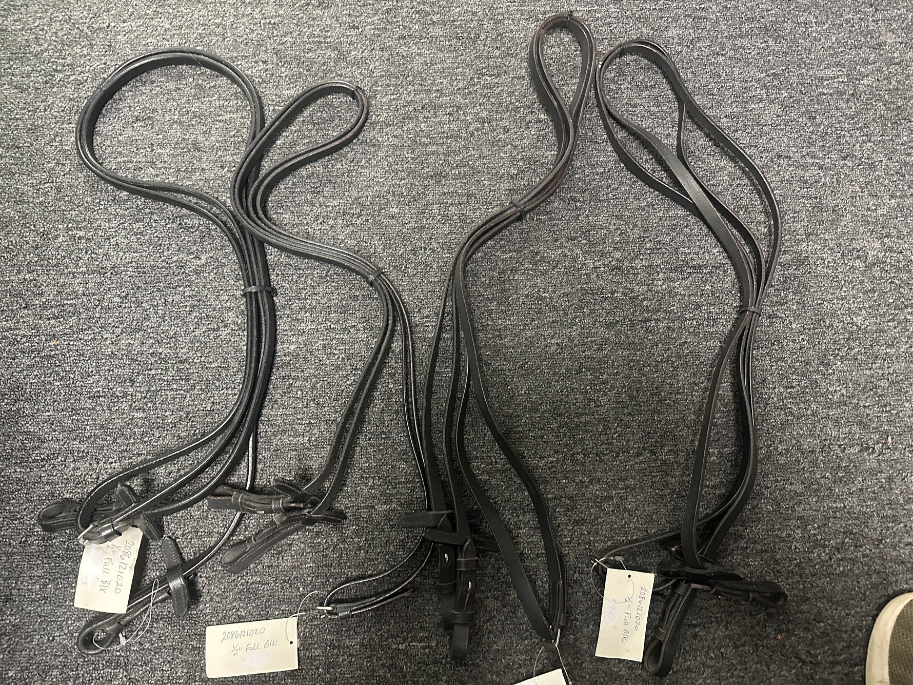 1/2 inch Black leather Reins with stoppers for martingale