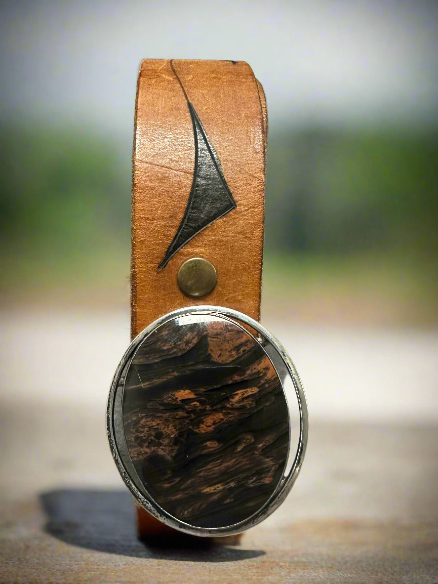 Women's Western Leather Belt with Agate in Sterling Silver
